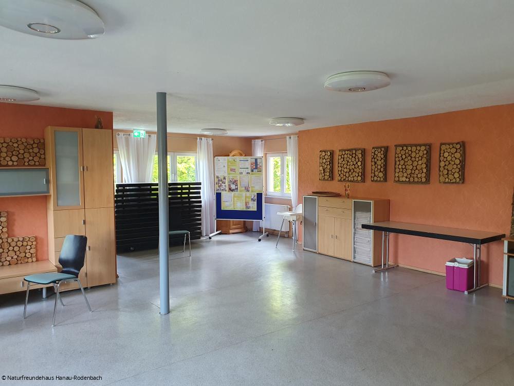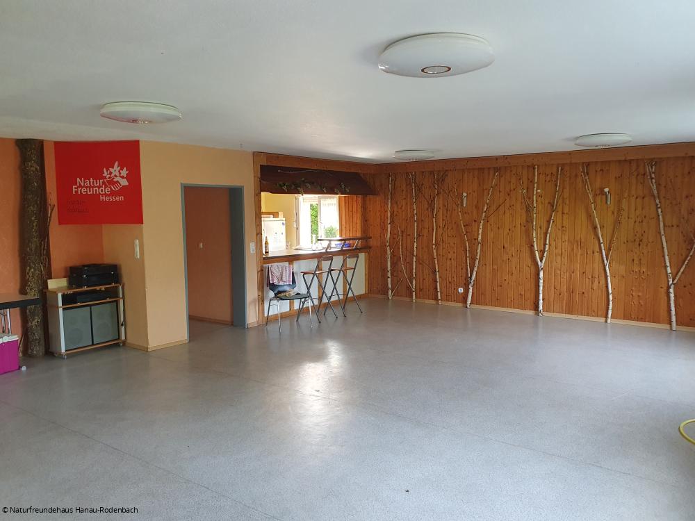 Das 2005-2006 frisch kernsanierte Haus strahlt außen blau-weiß und innen fröhlich bunt am Orts- und Waldrand von Oberrodenbach im Vorspessart. Dieser ist berühmt für seine hügelige und waldreiche Landschaft sowie seinen unzähligen und gut markierten Wanderwegen bis in den bayrischen Spessart hinein. So ist es kein Problem, das Naturfreundehaus als Ausgangspunkt für Wanderungen, Rad- und Mountainbiketouren in die Natur oder eine Tour an der hessichen Apfelwein- und Obstwiesenroute zu nutzen. Mit dem Reisebus kann man bis an das Haus heranfahren. Grillplatz, Spiel-/Liegewiese und Kinderspielplatz befinden sich direkt am Haus. Jugend- und Wandergruppen, Vereine, Schulen und Kinderhorte verpflegen sich selbst, können aber auch ein lehrreiches »Klimafrühstück« bekommen. An den Wochenenden gibt es für hungrige Wanderer eine kräftige Stärkung in der Gaststätte.